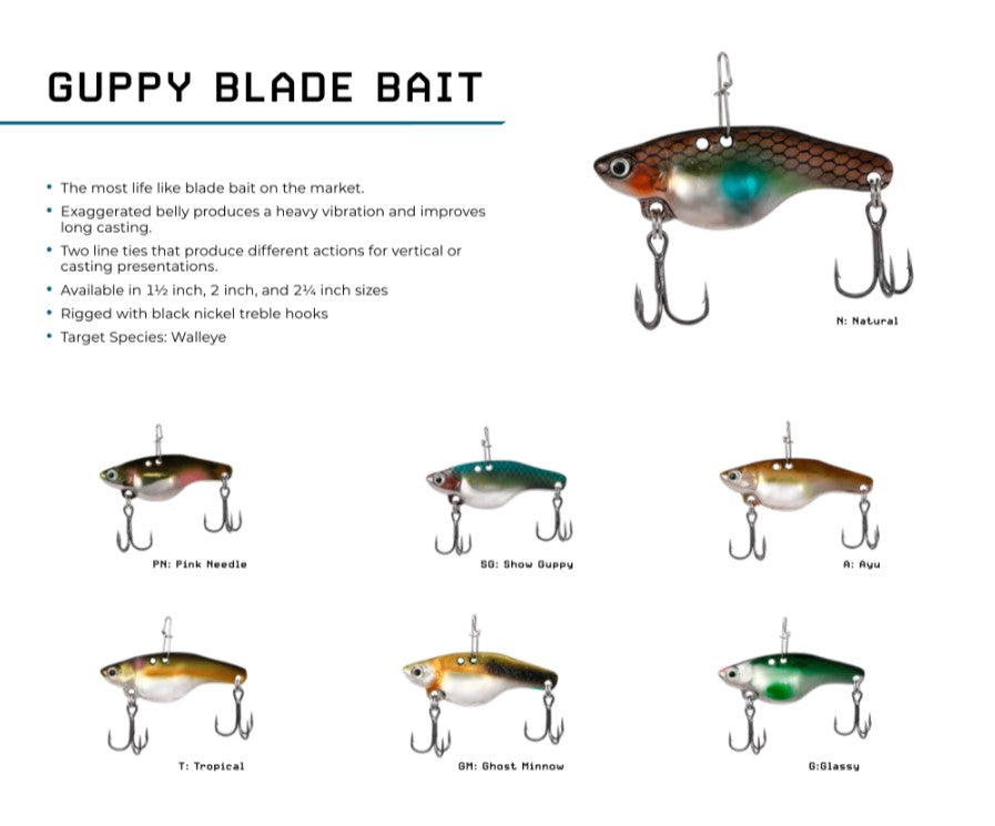 Enhance your fishing game with the FishLab Guppy Blade Bait! This vibrating bait is designed to imitate a small fish, triggering predatory instincts in bass and other species. Available in seven colors and three sizes, this life-like blade bait has two distinct line tie points that you can adjust for action - perfect when casting or vertical presentations are needed. So, take on bigger catches today by adding the powerful addition of the Guppy Blade Baits to your arsenal!