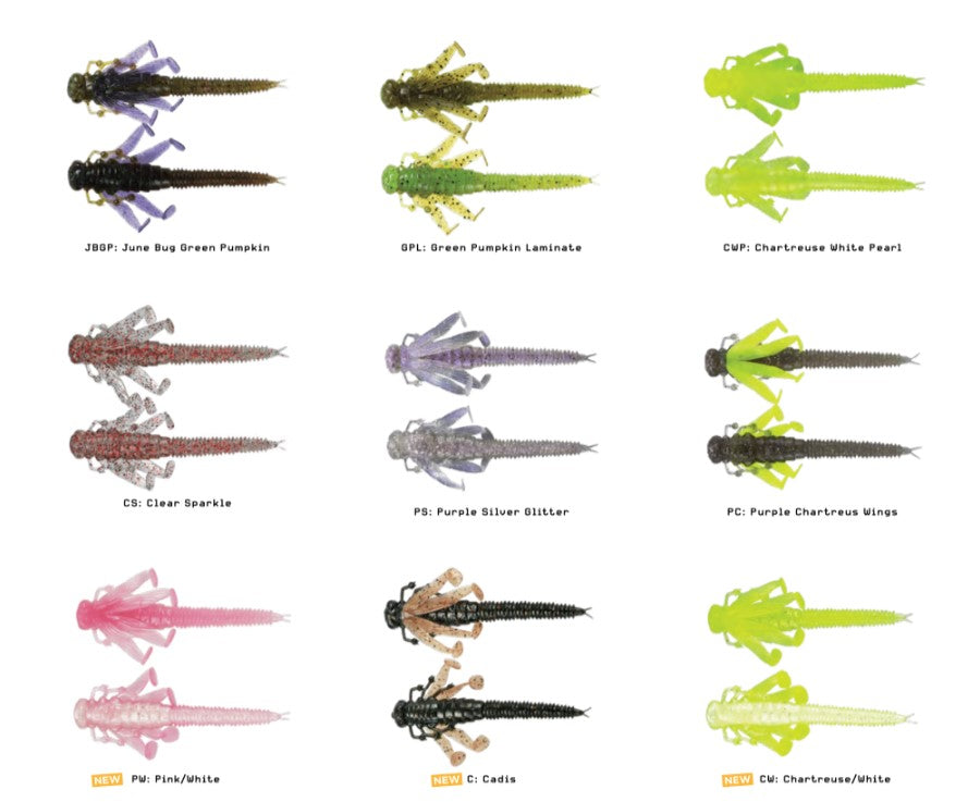 Nature Series Flutter Nymph is a creature bait with a sleek shape and four paddle-kicking wings. Available in a micro- 2 1/2" size as well as compact 3½" and the 4 ¼" size, they have you covered for your flipping and pitching needs. With eight tournament-winning proven colors for any type of fishing or water condition, the Nature Series Creature Baits have you covered. The bodies come 6 to a pack and are designed to be fished on a multitude of 3/0 to 5/0 hook styles.