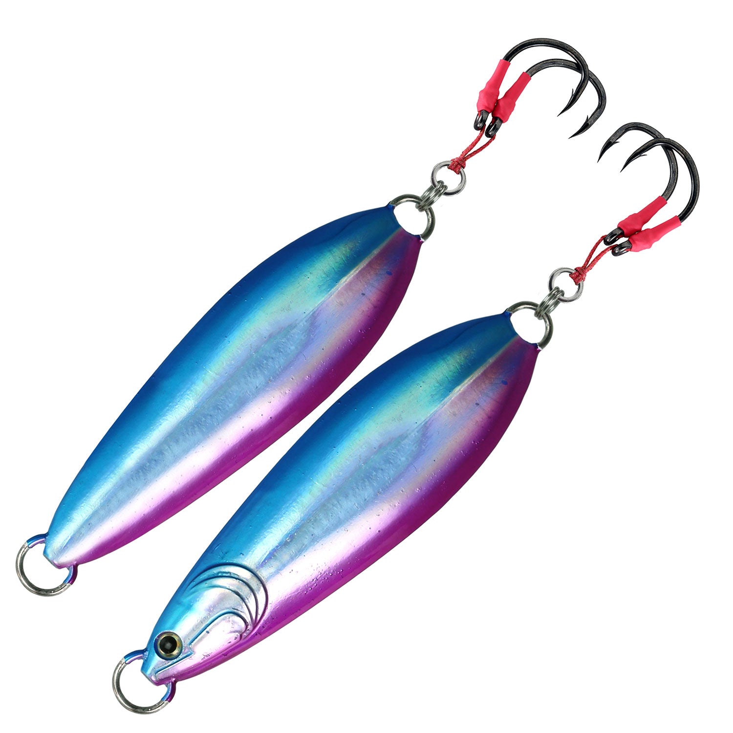- 250 and 300 gram sizes come rigged with a Mustad Stainless Steel 7691 hook for west coast Bluefin Tuna fishing or oversized/toothy gamefish that can quickly chew through braid rigged assist hooks.