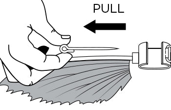 With your live or frozen baitfish ready, remove the band and pin from the Bio-Flyer harness.