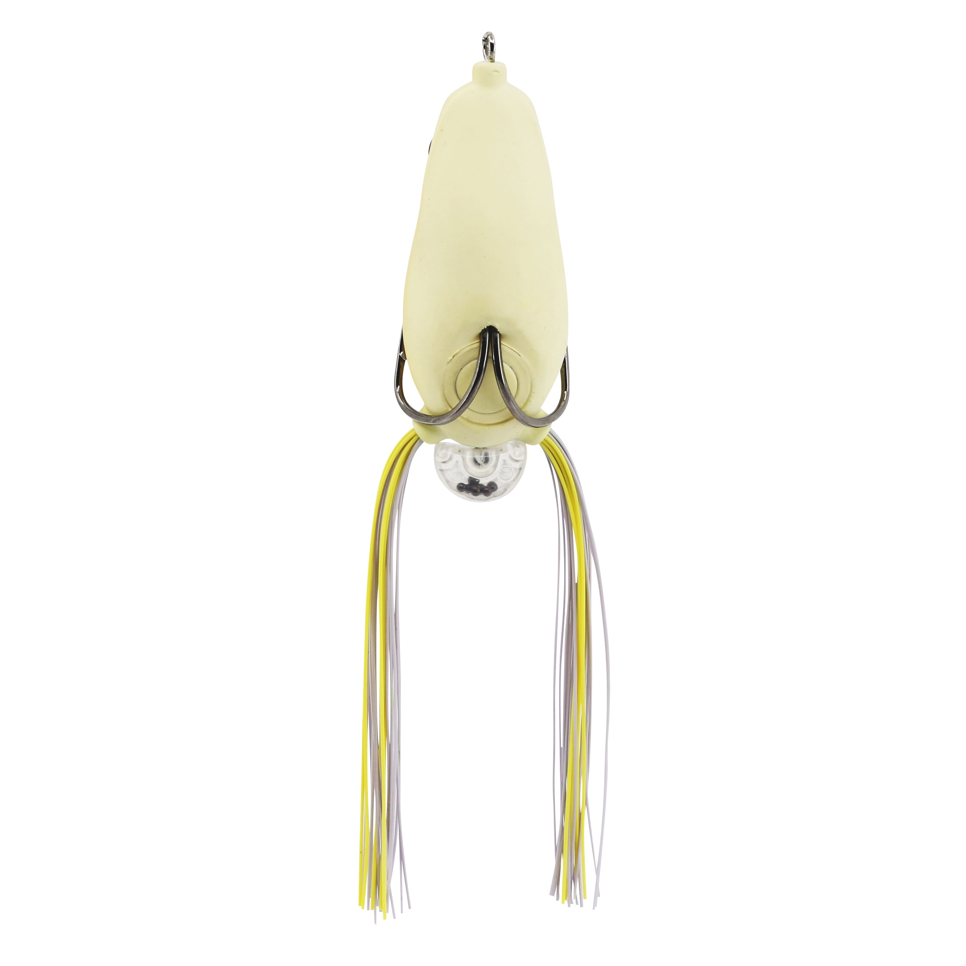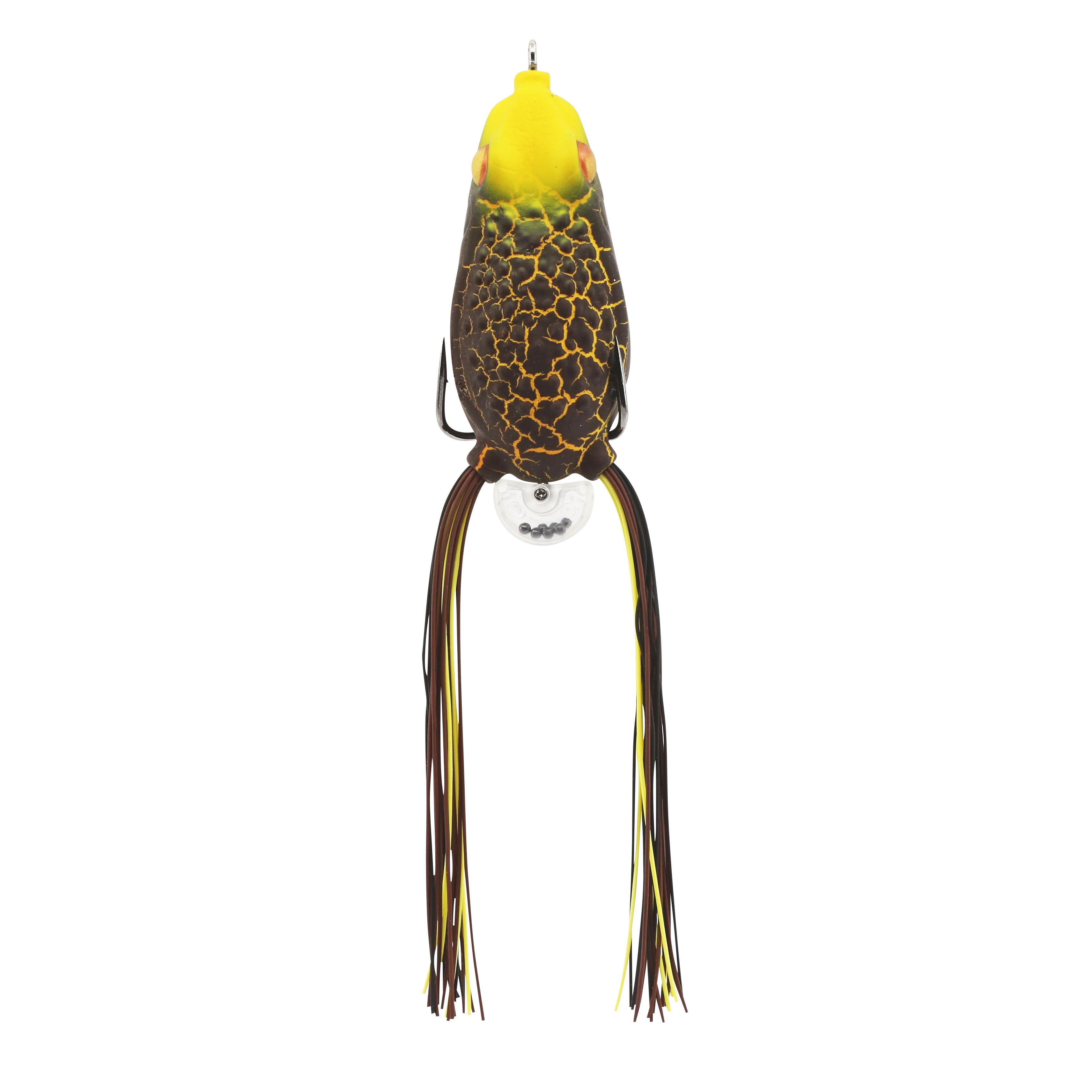 • Oversized rattle chamber mounted to the back of the toad keeps the toad lying flat and makes it easier for fish to track the bait over thick mats of grass or through heavy scum lines.
